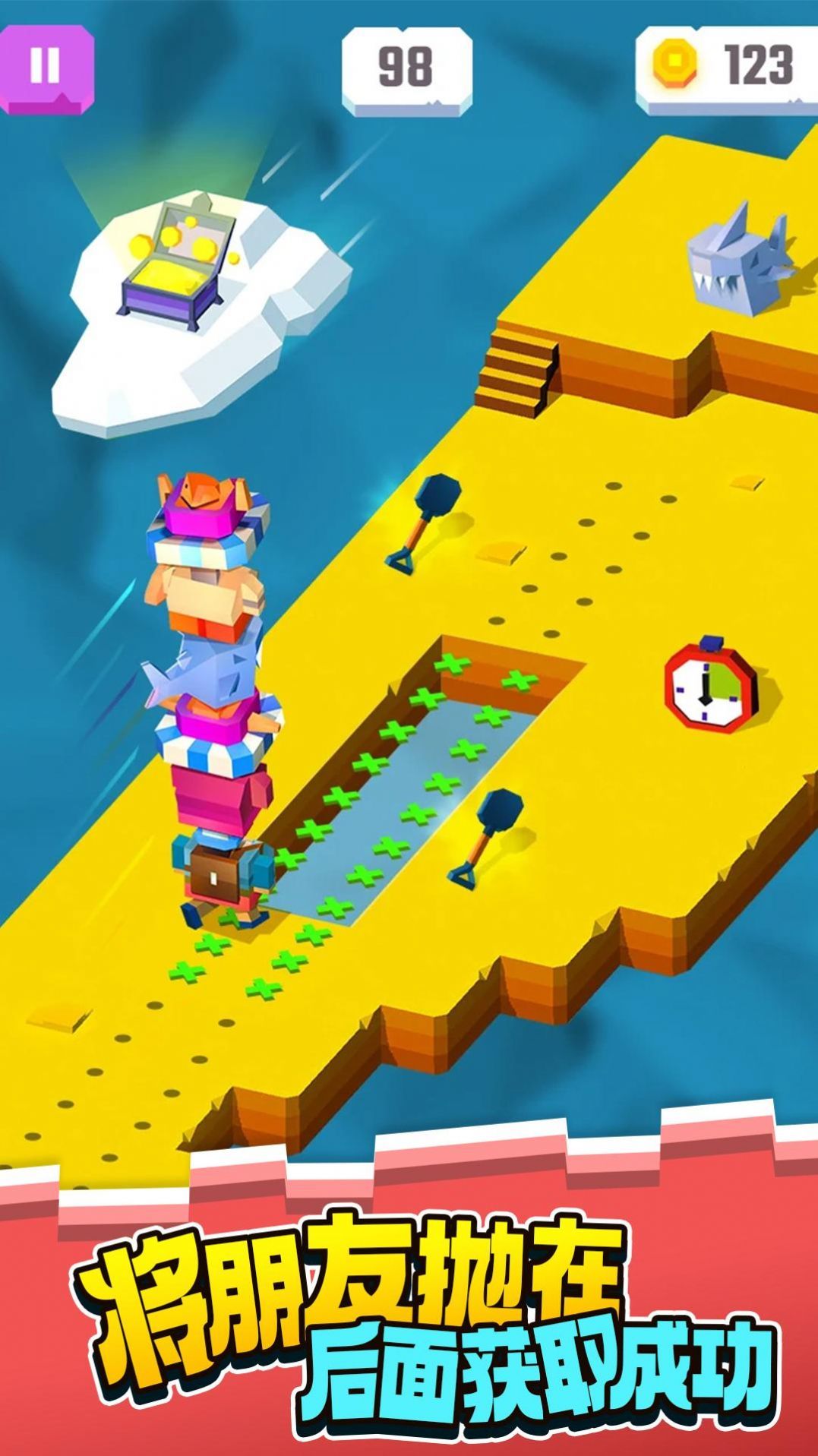 游戏在传统叠罗汉玩法基础上,创新融入动态环境要素。例如第15关的强对流天气会使叠层产生偏移,第30关的移动平台需要精准预判落点,而隐藏关卡「太空失重」则完全颠覆物理规则。建议新手优先完成教学关卡掌握抛掷力度,再通过每日挑战积累特殊道具,最后组队挑战无尽模式冲击全球排行榜。